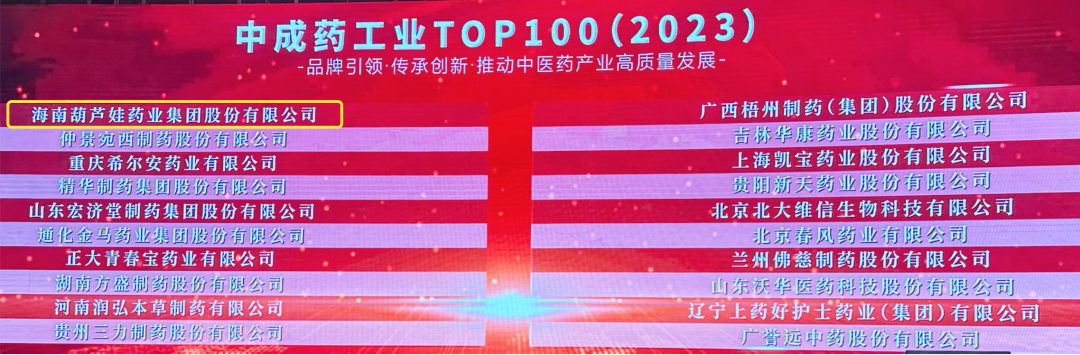 会上,还发布了“2023中成药工业TOP100”榜单,PA视讯药业集团荣耀上榜。